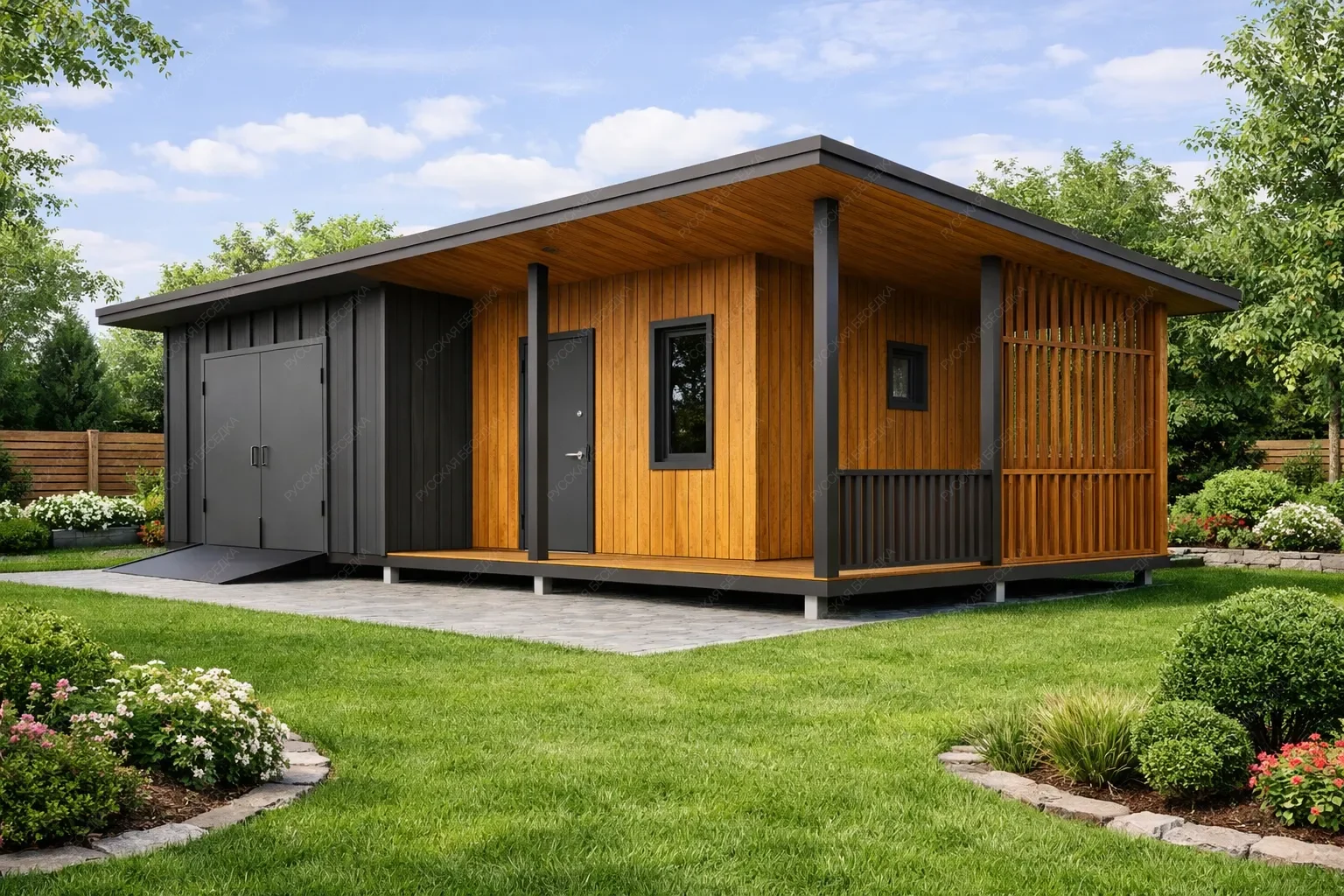 Деревянный гараж — это не только удобное и функциональное сооружение, но и отличная возможность дополнить архитектурный стиль вашего участка. Деревянные конструкции остаются вечной классикой, так как дерево — экологически чистый и натуральный материал. Одним из основных преимуществ деревянных гаражей является их доступная цена, что делает их более выгодным вариантом по сравнению с постройками из других материалов. При правильном строительстве деревянный гараж может служить десятилетиями, сохраняя все свои свойства и привлекательный внешний вид. Мы заботимся о качестве наших конструкций, обрабатывая древесину надёжными пропитками, которые защищают от гниения и плесени. Огнебиозащитные средства обеспечивают устойчивость к влаге, ультрафиолетовому излучению, перепадам температуры и другим атмосферным воздействиям. Кроме того, мы можем предложить утепление гаража, учитывая важность пароизоляции для сохранения тепла и защиты конструкции. Индивидуальное проектирование позволит вам точно вписать гараж в экстерьер вашего участка и оптимально спланировать внутреннее пространство для удобства использования. Создайте идеальное место для хранения вашего автомобиля и оборудования с нашим деревянным гаражом!