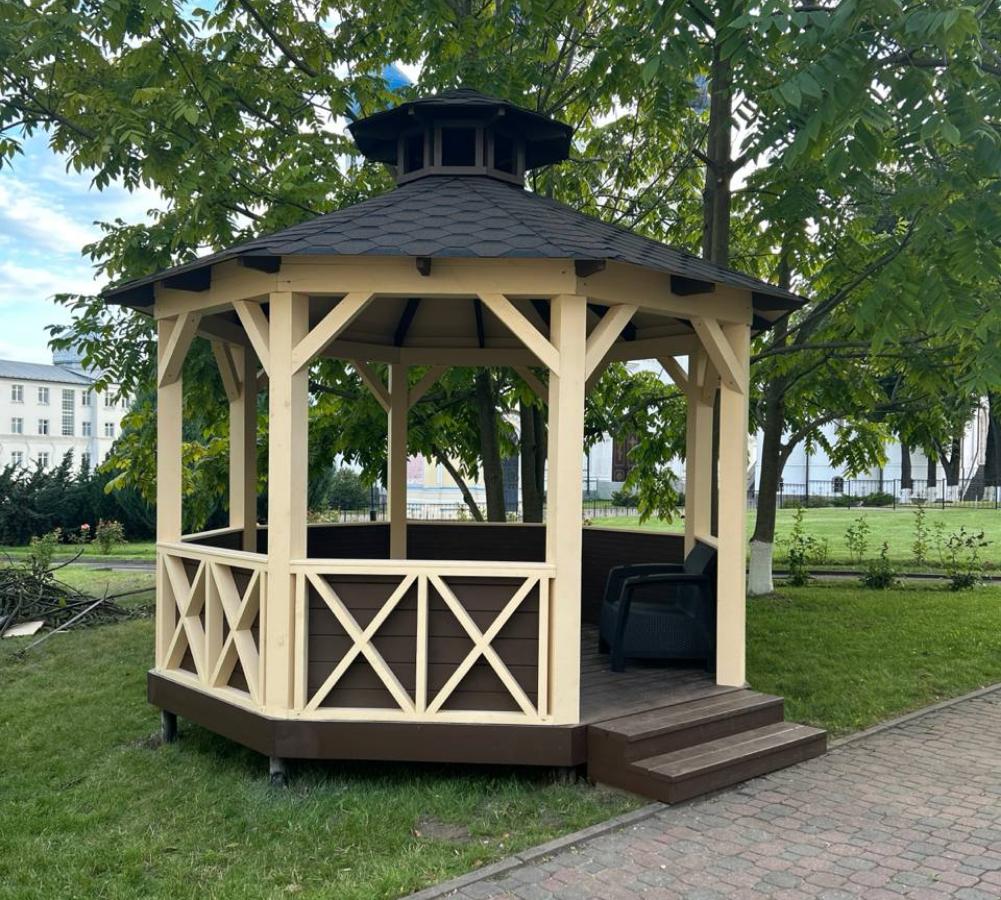 Беседка выполненная из лучших пород древесины, прослужит долгие годы и не потребует особого ухода и обслуживания. Специальные лакокрасочные материалы которые мы используем, предотвратят старение, гниение и заражение грибком конструкции кухни. Используемая огнебиозащита образует полупрозрачное полуматовое покрытие, стойкое к влаге, УФ-излучению, перепадам температуры и другим атмосферным воздействиям.