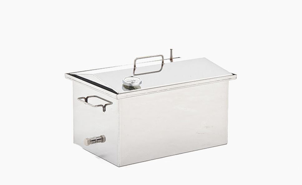 Универсальная домашняя коптильня для горячего и холодного копчения. Размер 450х250Х300 мм. Предназначена для копчения мясных, колбасных изделий, птицы, рыбы и других продуктов. Крышка домиком гарантирует отсутствие смол и влаги. Все жидкости стекают по наклонной поверхности в гидрозатвор. В результате продукт не прогоркает.Толщина стали 2 мм обеспечивает стойкость к деформациям и коррозии. Коптильня для дачи служит не менее 10 лет. Наличие гидрозатвора позволяет коптить продукты в помещении. Отвод дыма в таком случае производится из трубочки, расположенной на крышке коптильни. Все детали сделаны из зеркальной пищевой нержавеющей стали 2 мм. Коптильня холодного копчения является кислотостойкой и выдерживаят нагревание до 900 C. Лазерная резка исключает окалины и заусеницы, идеально гладкая и отполированная поверхность. Ювелирные сварные швы коптильни надежно сварены аргоновой сваркой без посторонних примесей.