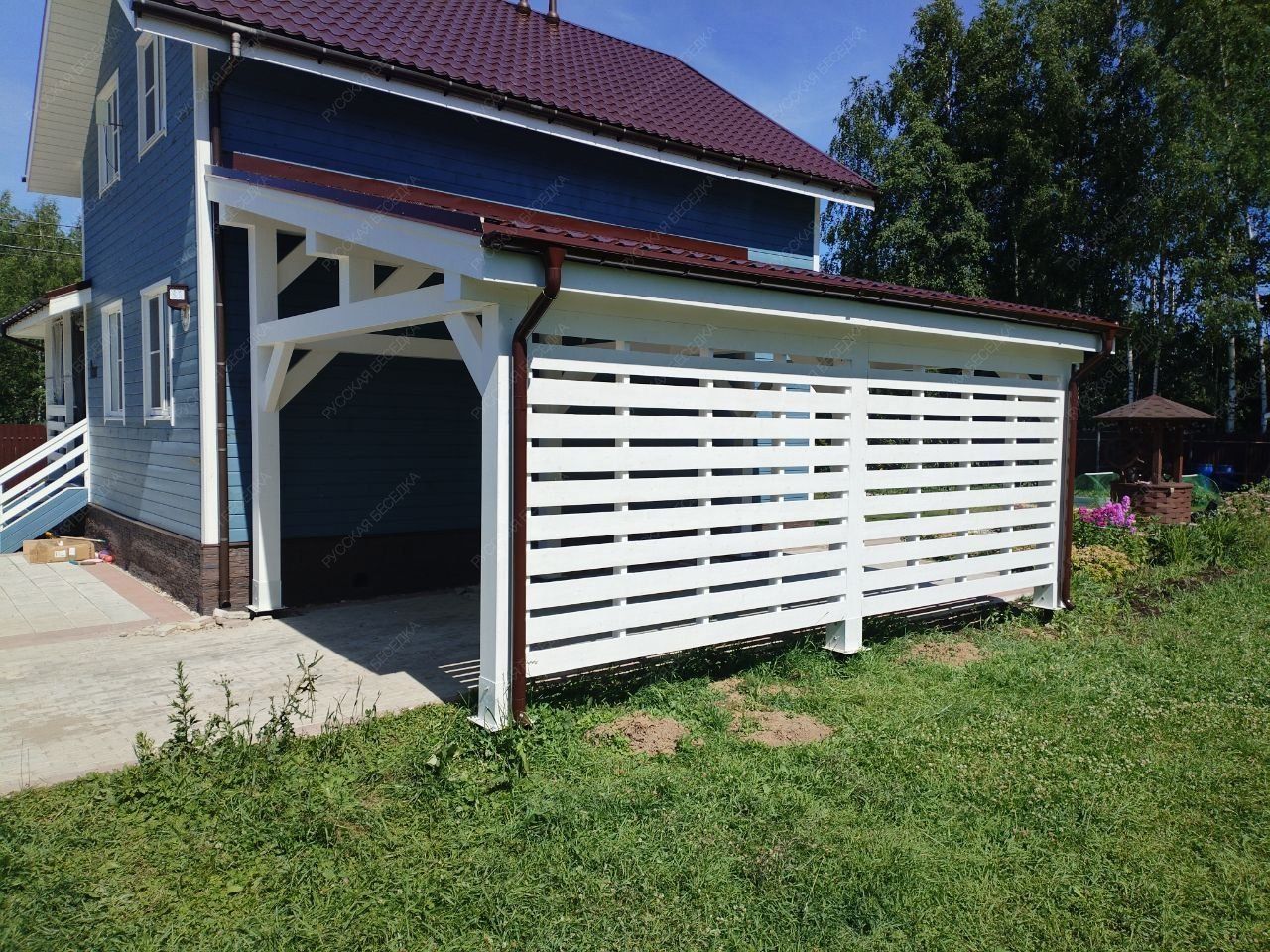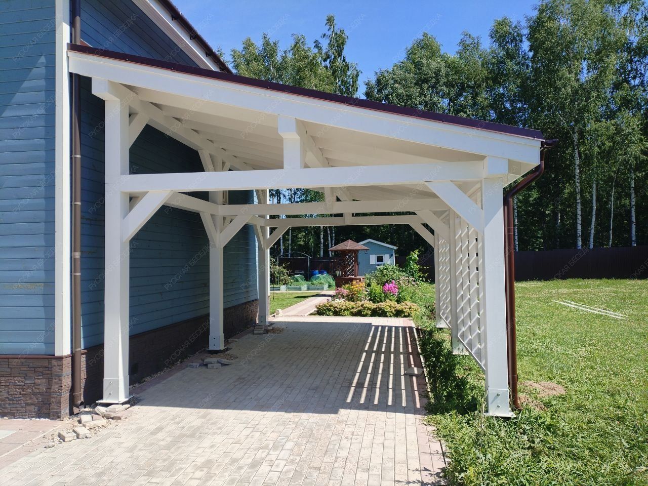Для производства всех элементов навеса используется только отборная древесина без малейших дефектов, прошедшая камерную сушку и пропитку антисептиками. Навесу после защитной обработки лаком не страшны высокая влажность, а значит, можно быть уверенным, что дерево не растрескается, не разбухнет и не покоробится.