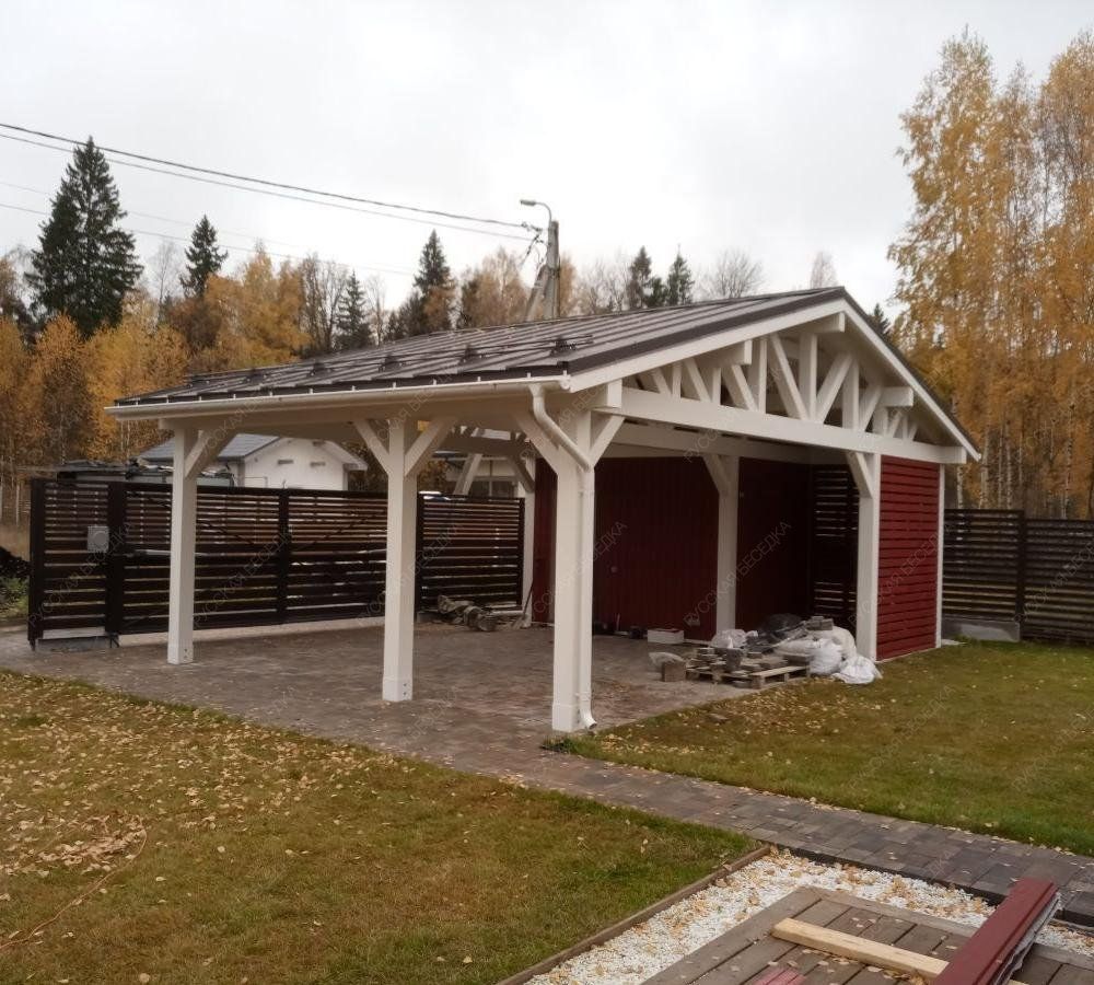 Навес на 2 машины с хозблоком ВЕКШИНО (полный комплект для сборки) 1 113 093 р