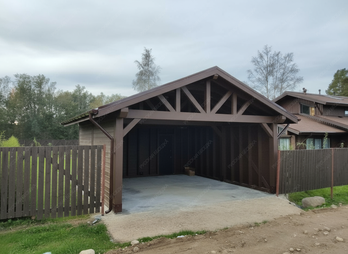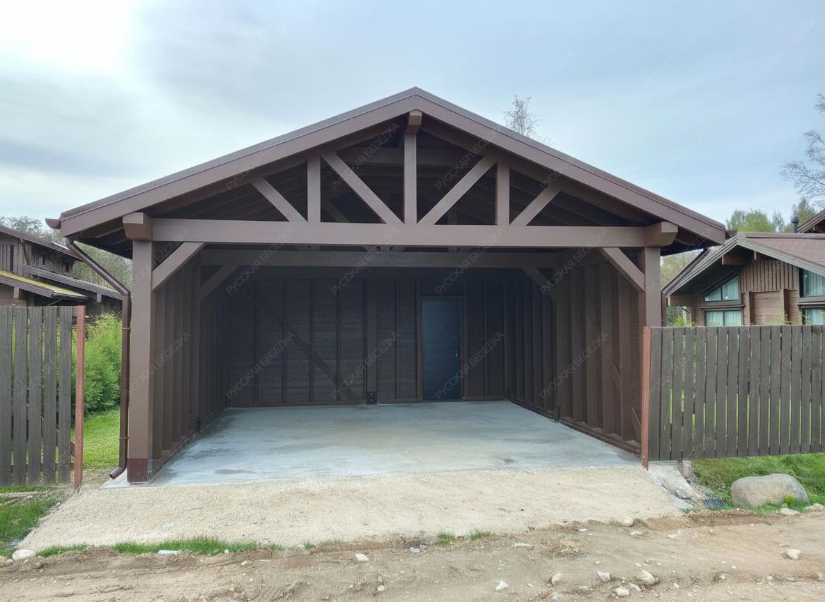 Навес из дерева послужит отличным парковочным местом для одного или нескольких автомобилей.