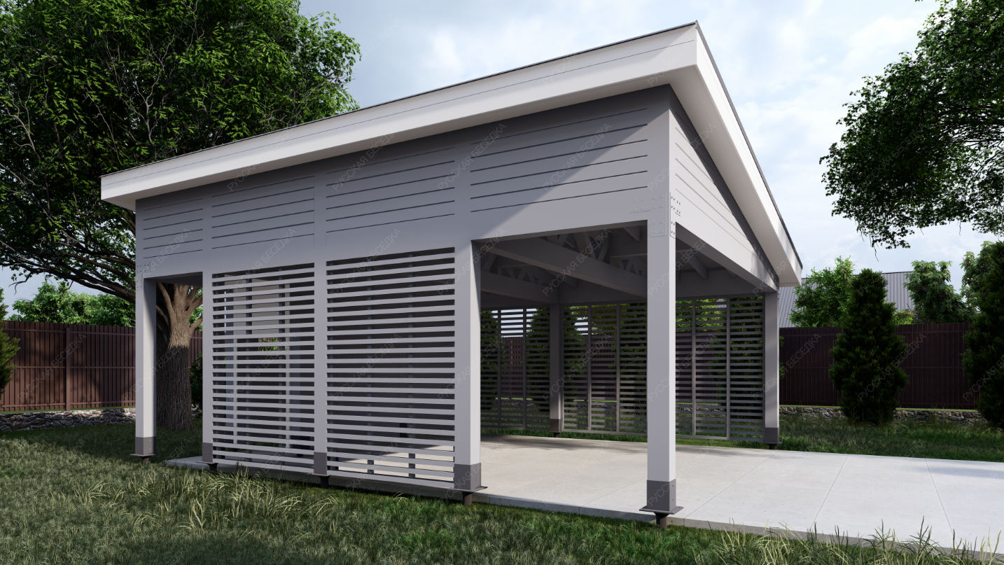 Навес из дерева послужит отличным парковочным местом для одного или нескольких автомобилей.