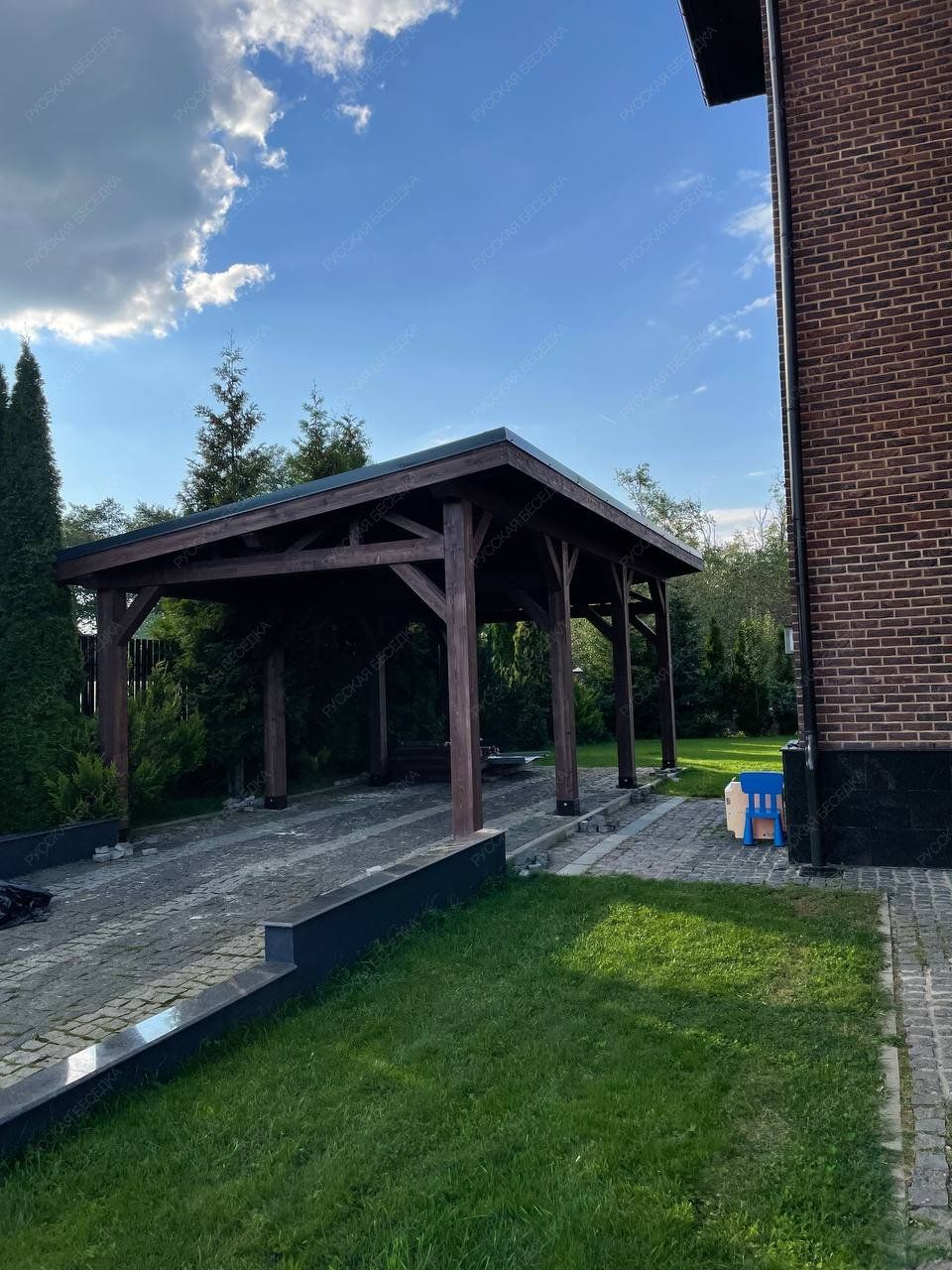 Навес из дерева послужит отличным парковочным местом для одного или нескольких автомобилей.