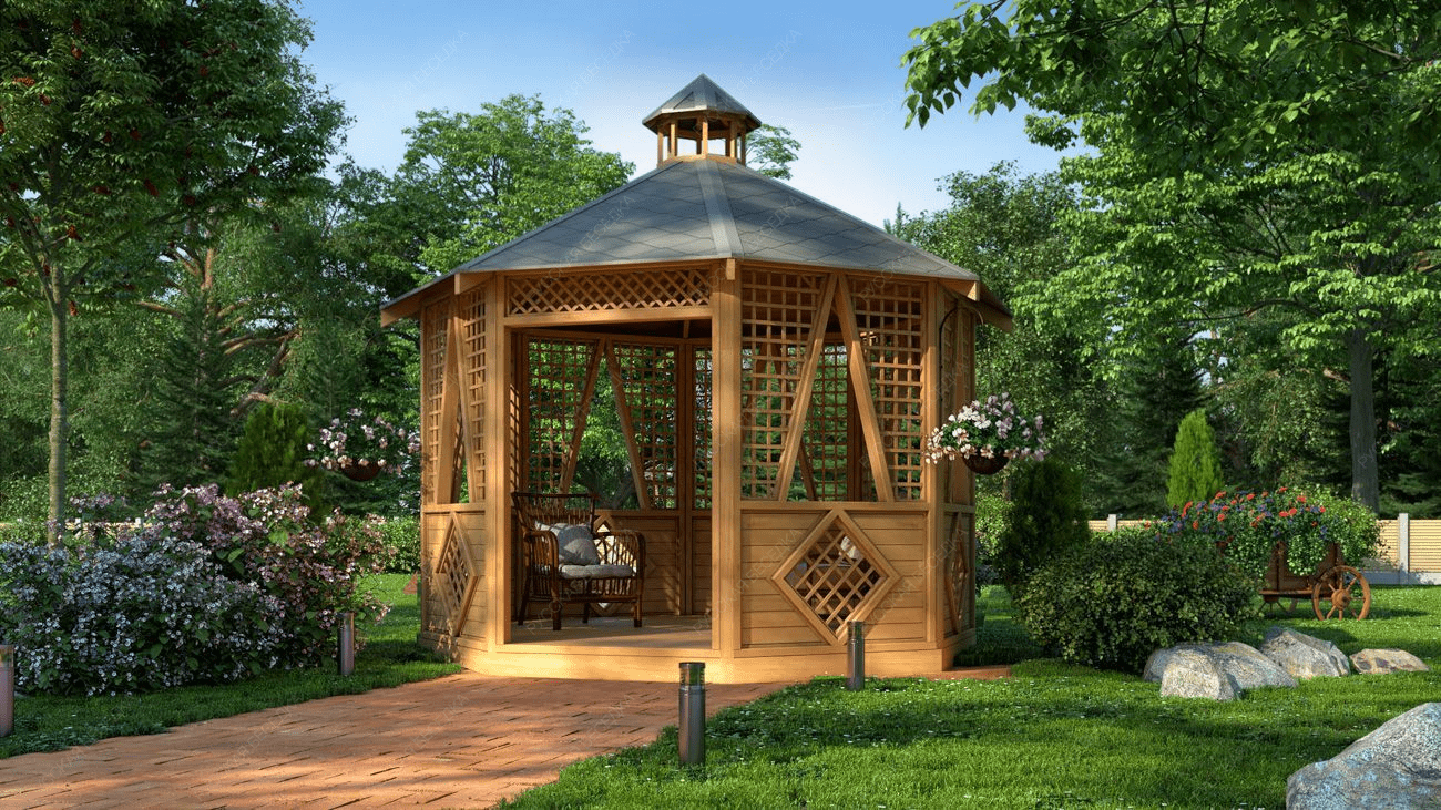 Современный ландшафтный дизайн и беседки - центральные элементы загородного участка. Беседка должна размещаться в таком месте участка, где вам будет комфортно находиться, а также она должна отвечать своему назначению и притягивать взгляды. Беседка является уникальным строением, с ее помощью можно отдохнуть за чашечкой кофе, укрыться от знойного солнца или провести шумный праздник в кругу семьи и друзей.