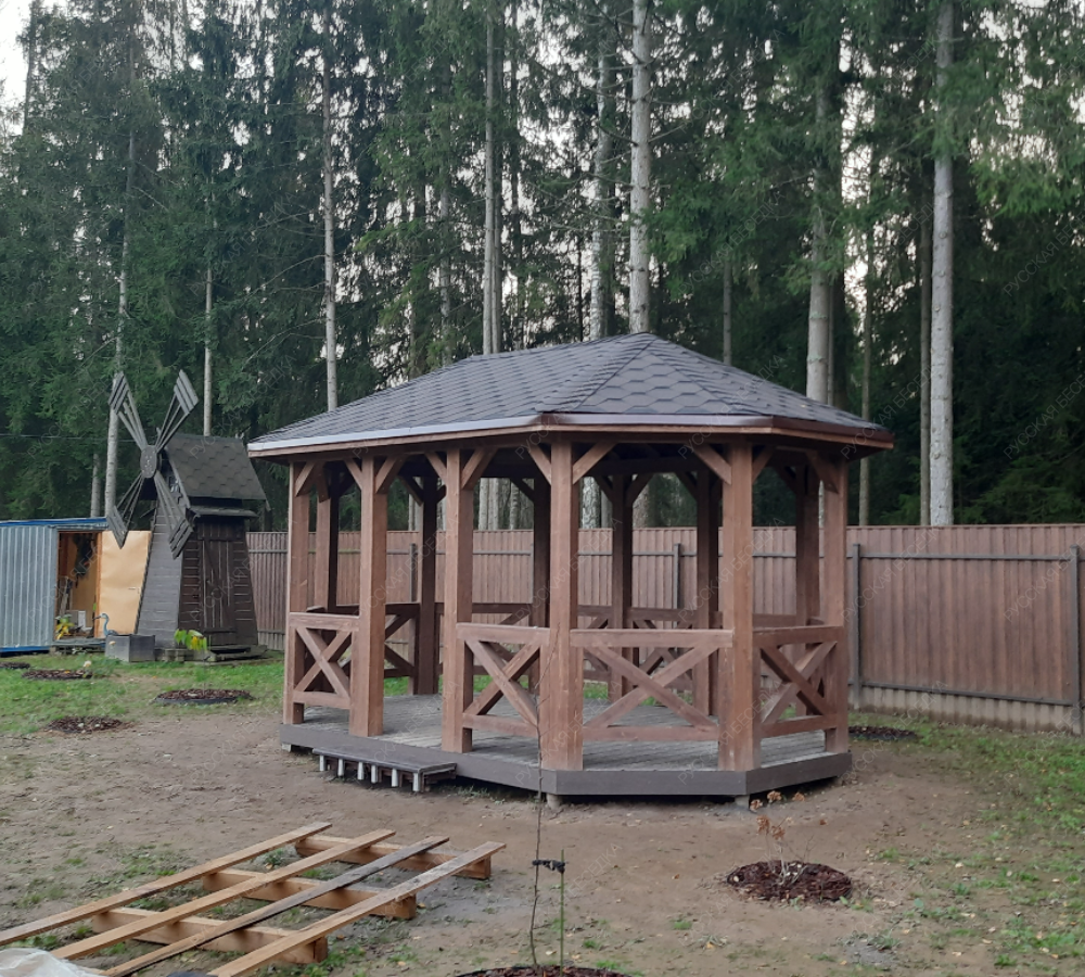 Беседка выполненная из лучших пород древесины, прослужит долгие годы и не потребует особого ухода и обслуживания. Специальные лакокрасочные материалы которые мы используем, предотвратят старение, гниение и заражение грибком конструкции кухни. Используемая огнебиозащита образует полупрозрачное полуматовое покрытие, стойкое к влаге, УФ-излучению, перепадам температуры и другим атмосферным воздействиям.