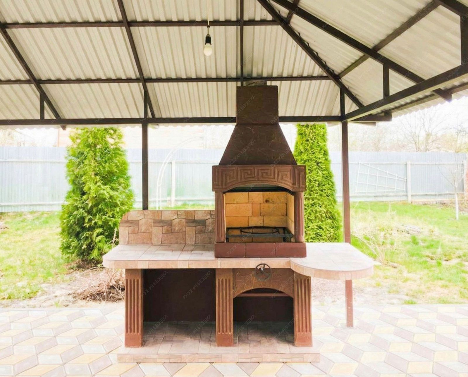 Барбекю-комплекс сделан из армированного огнеупорного бетона с добавлением керамзита.