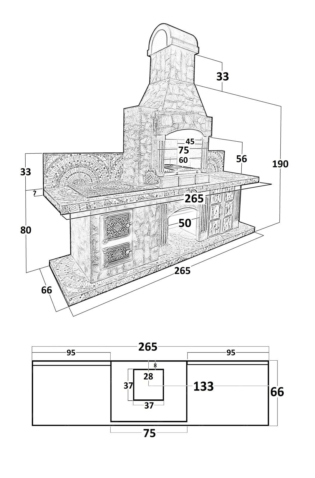 Печь № 13 — Печь барбекю с печью под казан и рабочим столом (или мойкой)