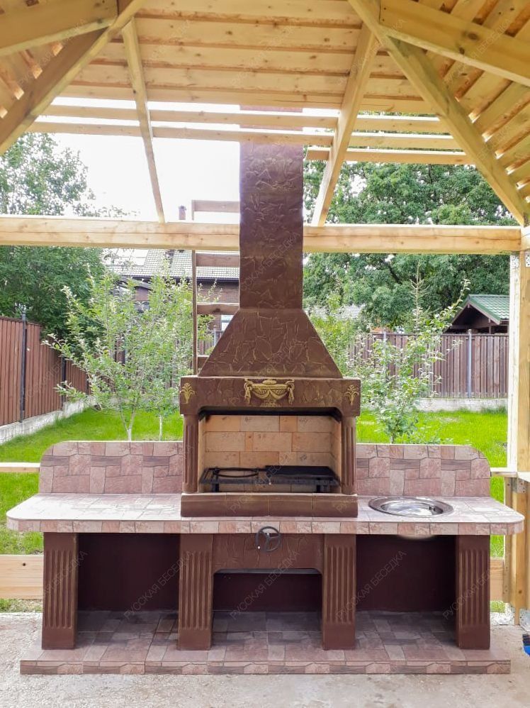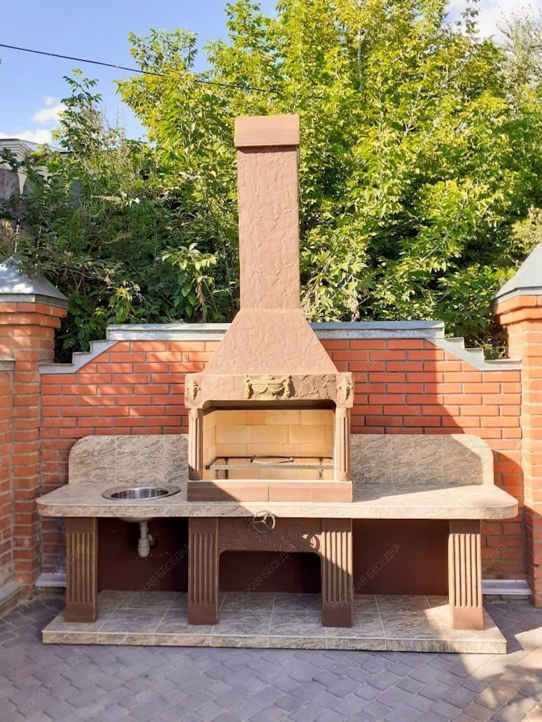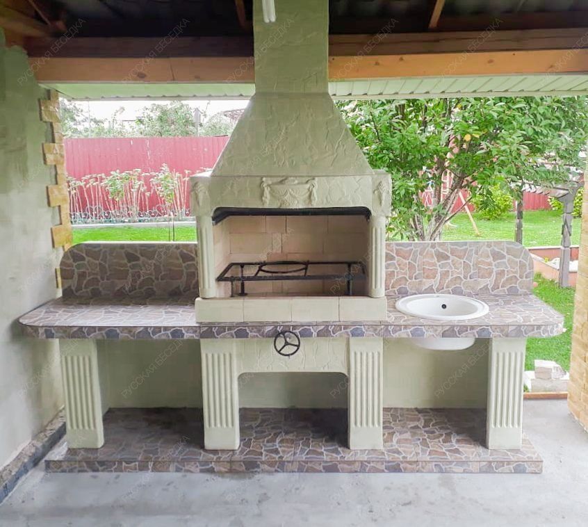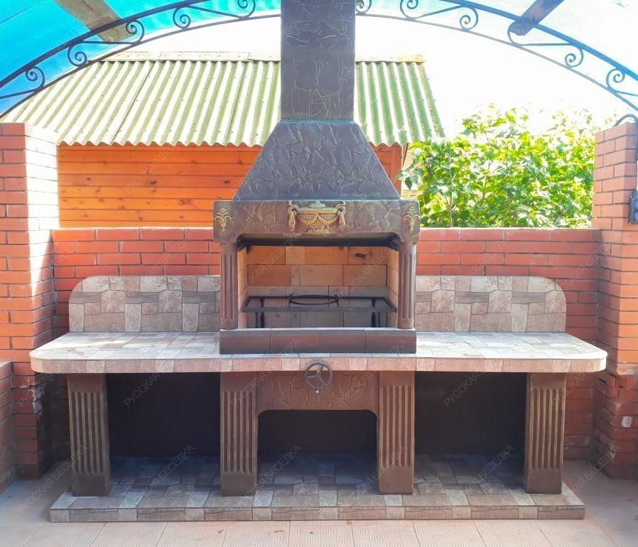 Барбекю-комплекс сделан из армированного огнеупорного бетона с добавлением керамзита.