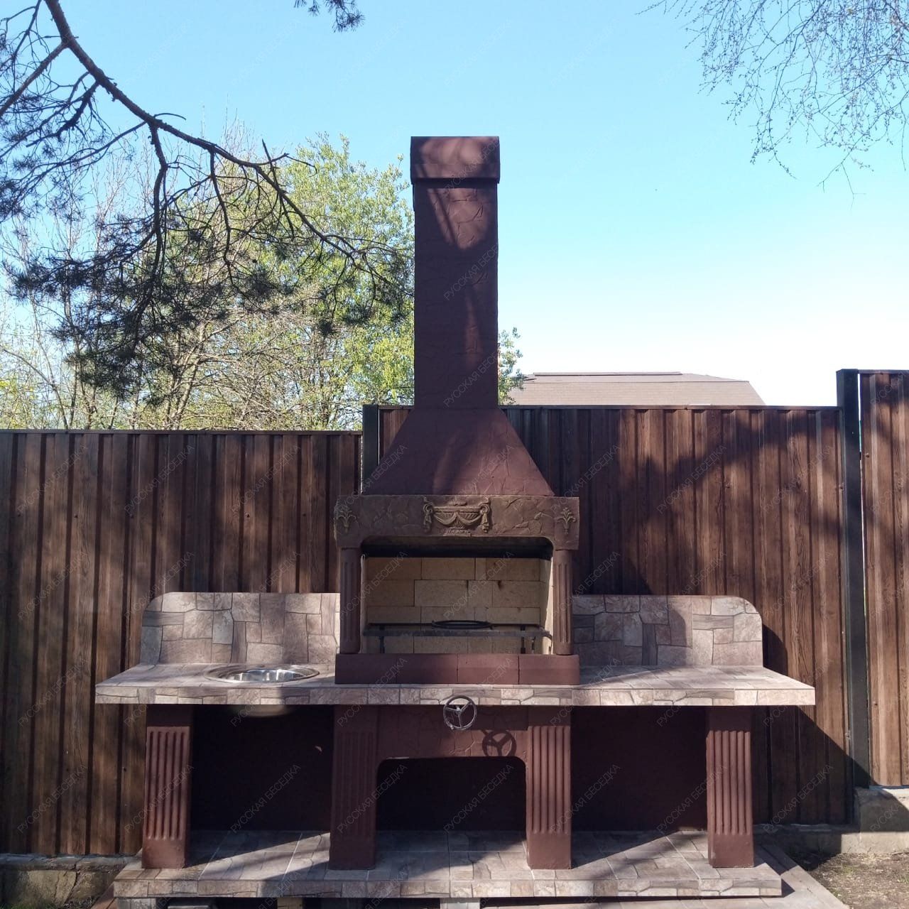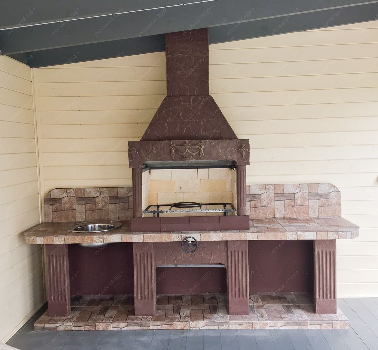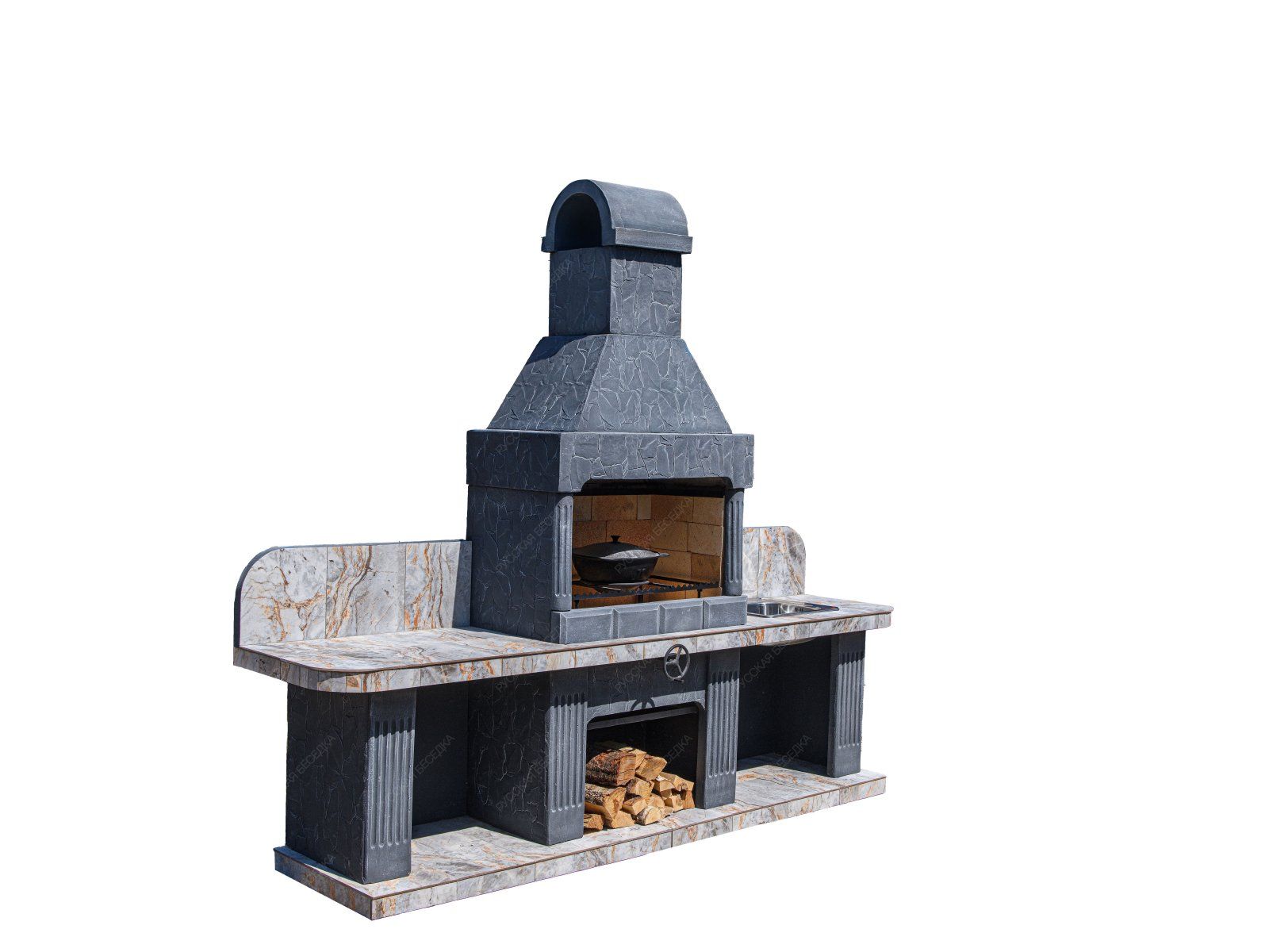 Барбекю-комплекс сделан из армированного огнеупорного бетона с добавлением керамзита.