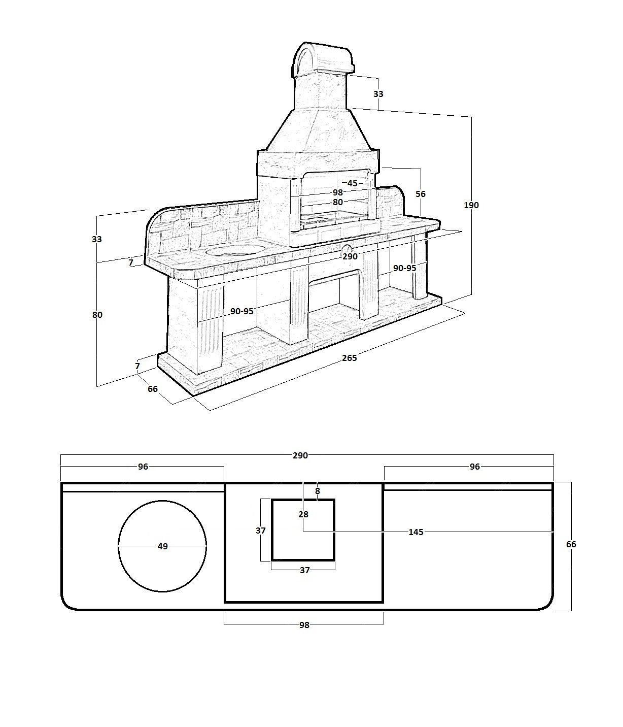 Печь № 16 — Печь барбекю с двумя рабочими столами (или мойкой)