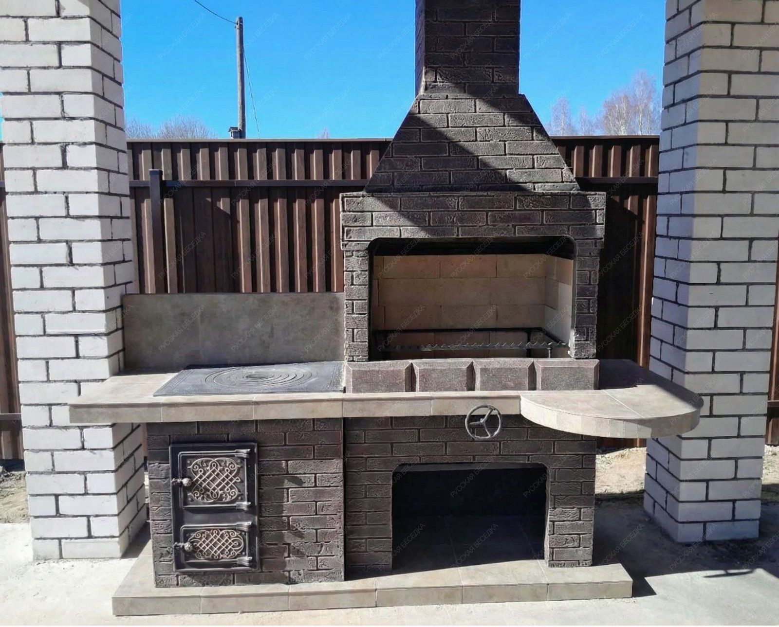 Печь № 20А — Печь Барбекю с большой топкой и печью под казан (фактура под кирпич)