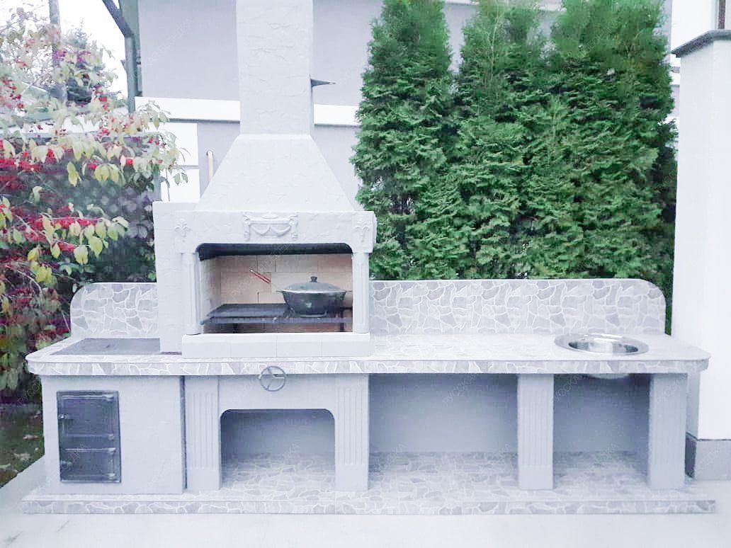 Печь № 22 — Печь барбекю с печью под казан, мойкой и рабочим столом