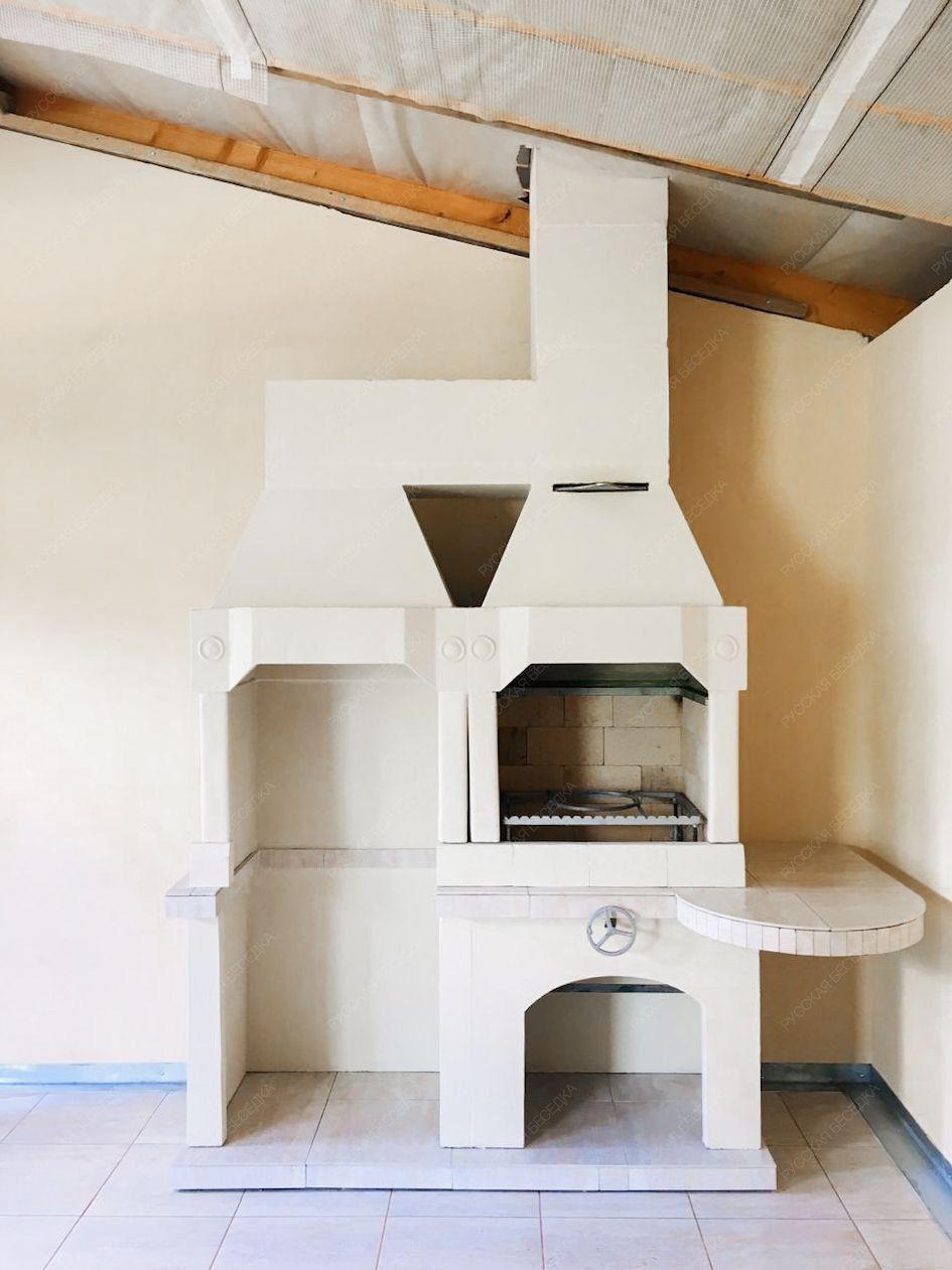 Барбекю-комплекс сделан из армированного огнеупорного бетона с добавлением керамзита.
