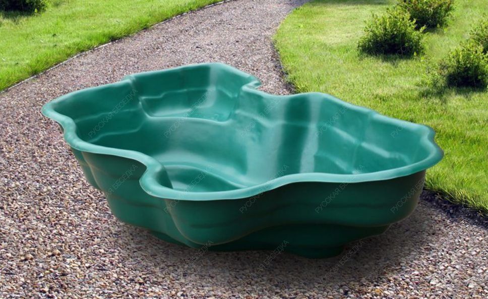 Декоративный водоем – эффектное украшение любого участка, идеально вписывающееся в его ландшафт. Декоративный пруд в саду создает не только особый микроклимат, является эффектным декоративным элементом.Он благотворно влияет на психику человека, позволяет лучше расслабиться, отдыхая у воды. Пластиковый садовый пруд – одно из наиболее рациональных решений для создания особой атмосферы на участке загородного дома или дачи. Кроме садового пруда из полипропилена в саду можно устроить ручей, болотце, водопад, каскад, даже оригинальную водную композицию, включающую разнообразные элементы.                                                                                                     Объем 900л, длина 250см, ширина 150см, высота 60см, толщина 0,07см, вес 16кг.Материал ПНД (полиэтилен никого давления) морозостойкий -50С до +50С. УФ стойкость. Подходит для круглогодичного использования, возможность оставлять зимой с водой.