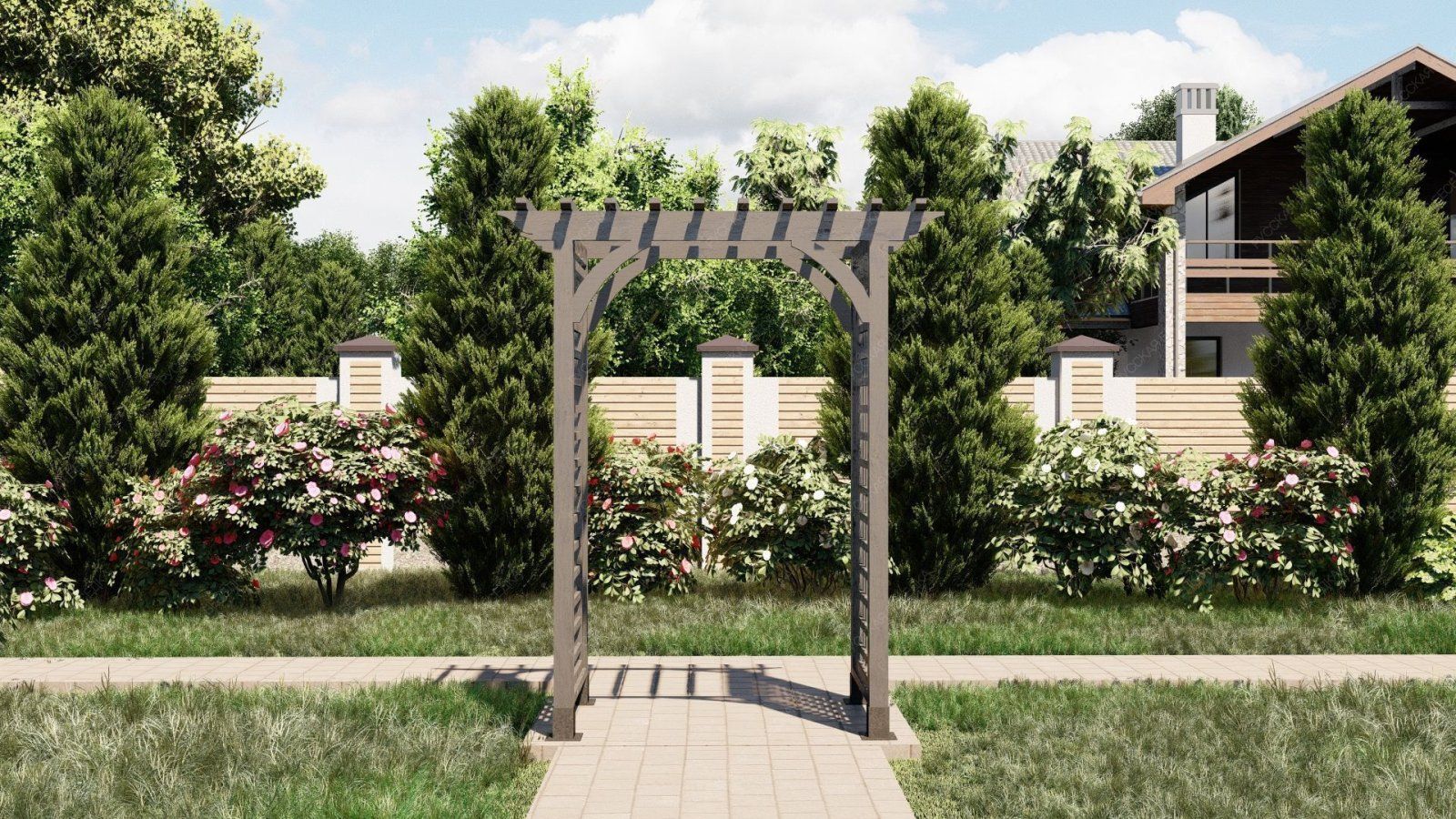 Перголы, шпалеры и арки — это прекрасные элементы ландшафтного дизайна, которые добавляют изысканность и стиль вашему участку. Эти деревянные конструкции не только эстетически привлекательны, но и функциональны, создавая уютные уголки для отдыха и наслаждения природой. Перголы помогают создать тень и защиту от солнца, прекрасно подойдут для обустройства зон для отдыха или столовых на свежем воздухе. Они отлично смотрятся, когда обвиты зелеными растениями, создавая живописные уголки в вашем саду. Шпалеры служат отличной поддержкой для вьющихся растений, позволяя им расти вверх и заполнять пространство зеленью. Это не только украшает ваш участок, но и помогает организовать вертикальное озеленение, что особенно полезно в условиях ограниченного пространства. Арки добавляют романтичности и шарма, становясь эффектным акцентом в вашем саду. Они могут служить входом в сад или создавать красивые проходы между различными зонами, придавая участку больше структуры и организованности. Все наши конструкции изготавливаются из качественного дерева, что гарантирует долговечность и надежность. Мы используем только отборные породы древесины, которые обрабатываются специальными пропитками для защиты от вредителей и атмосферных воздействий.