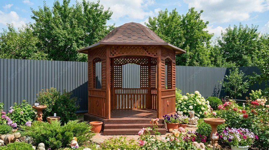 Современный ландшафтный дизайн и беседки - центральные элементы загородного участка. Беседка должна размещаться в таком месте участка, где вам будет комфортно находиться, а также она должна отвечать своему назначению и притягивать взгляды. Беседка является уникальным строением, с ее помощью можно отдохнуть за чашечкой кофе, укрыться от знойного солнца или провести шумный праздник в кругу семьи и друзей.