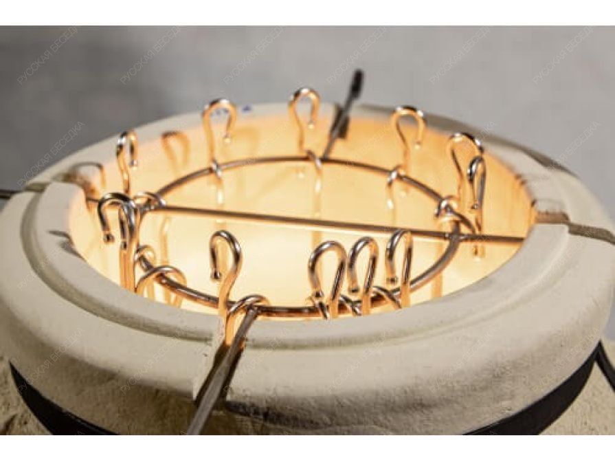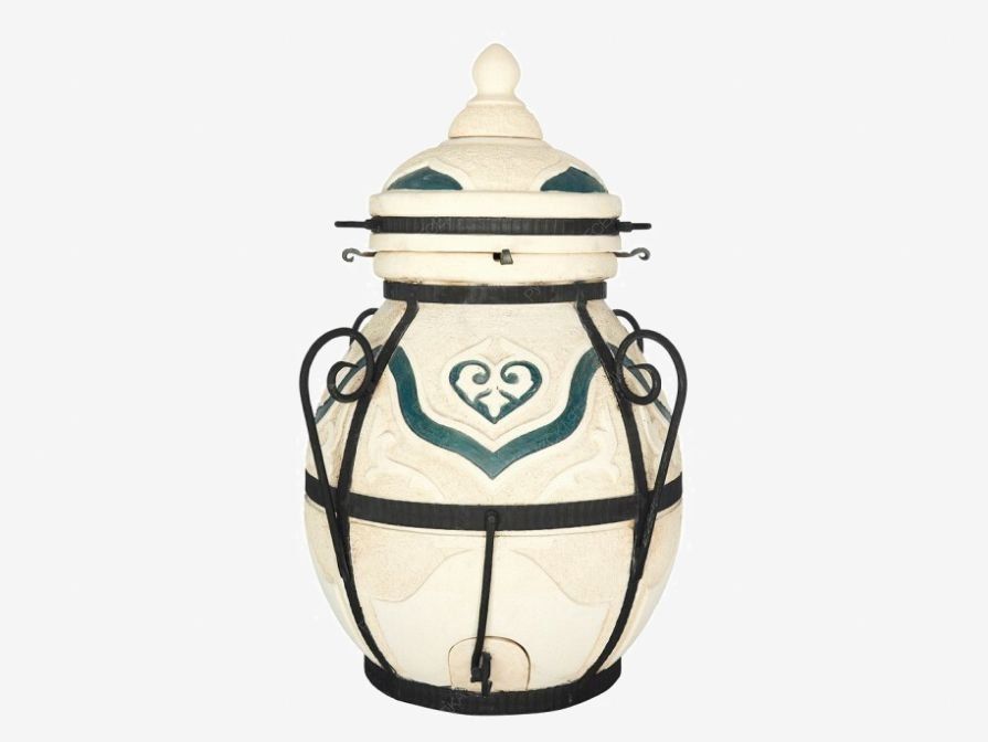 Данный тандыр идеально подходит для большой компании. В комплекте много шампуров, а толщина стенок увеличена для длительного сохранения тепла. Отличительная особенность этой модели — особый цветовой орнамент.