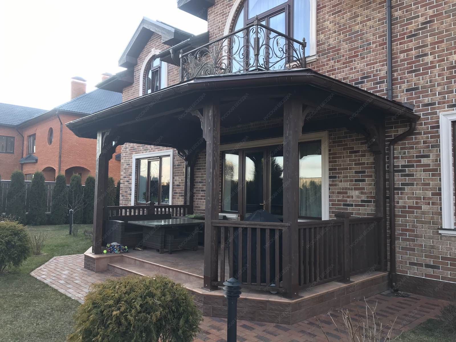 Из цельного массива дерева (не клееные), допускается возникновение трещин, не влияющих на надежность и функционал конструкции (к сожалению трескает любое дерево — бани, срубы, рубленные беседки, колодцы и т.д — влага ищет выход при высыхании только через трещины — исправить данные природой особенности дерева к сожалению невозможно)