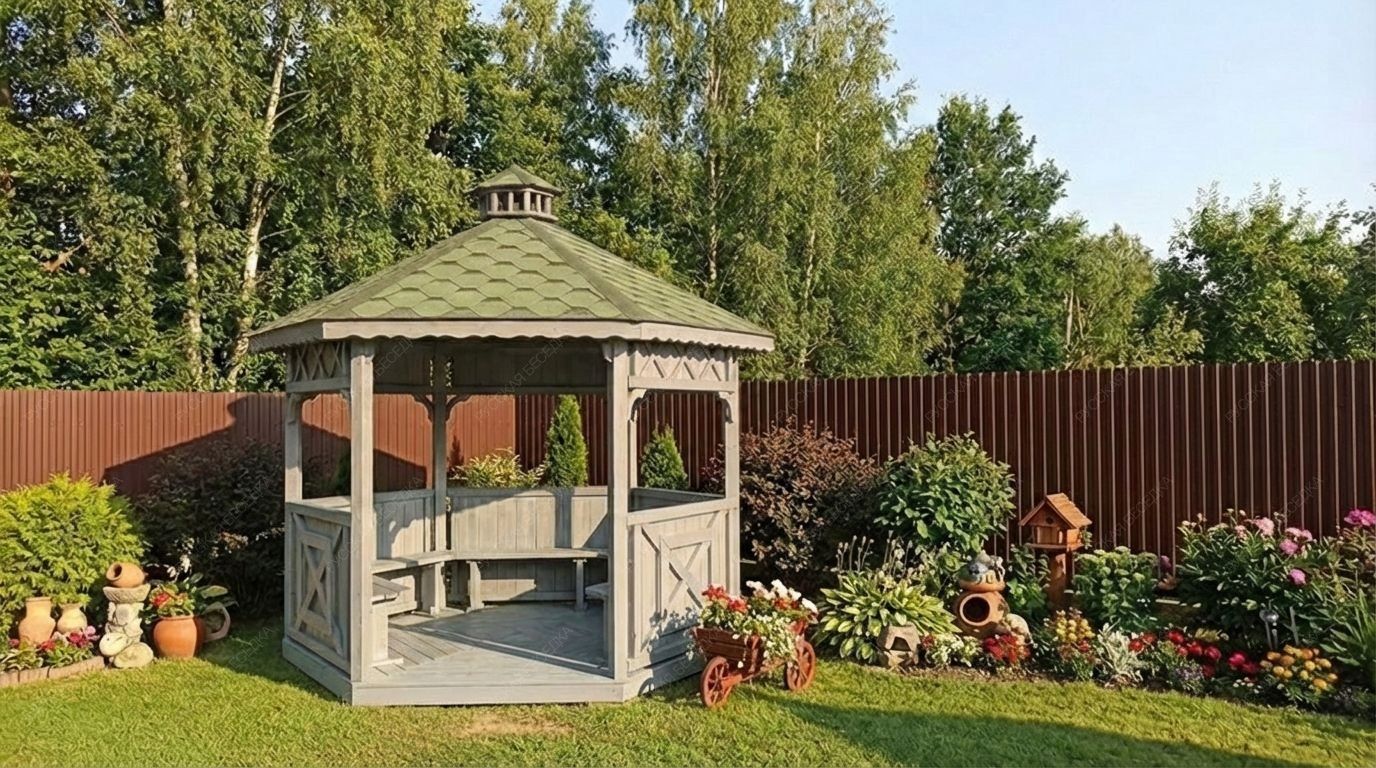 Современный ландшафтный дизайн и беседки - центральные элементы загородного участка. Беседка должна размещаться в таком месте участка, где вам будет комфортно находиться, а также она должна отвечать своему назначению и притягивать взгляды. Беседка является уникальным строением, с ее помощью можно отдохнуть за чашечкой кофе, укрыться от знойного солнца или провести шумный праздник в кругу семьи и друзей.